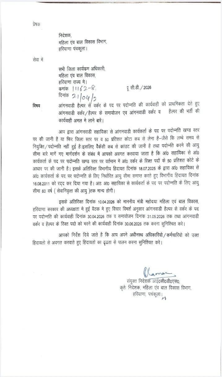 हरियाणा आंगनवाड़ी भर्ती 2026 अधिसूचना: हरियाणा महिला एवं बाल विकास निदेशालय ने अपनी आधिकारिक वेबसाइट पर हरियाणा आंगनवाड़ी भर्ती 2026 की अधिसूचना जारी करने वाला है, जिसमें 2549 आंगनवाड़ी कार्यकर्ता, 4439 सहायक पदों के लिए भर्ती की गई है। योग्य उम्मीदवार 2026 से आधिकारिक वेबसाइट पर ऑनलाइन आवेदन कर सकते हैं । हम आपको इस भर्ती से संबंधित पूरी जानकारी नीचे देंगे।