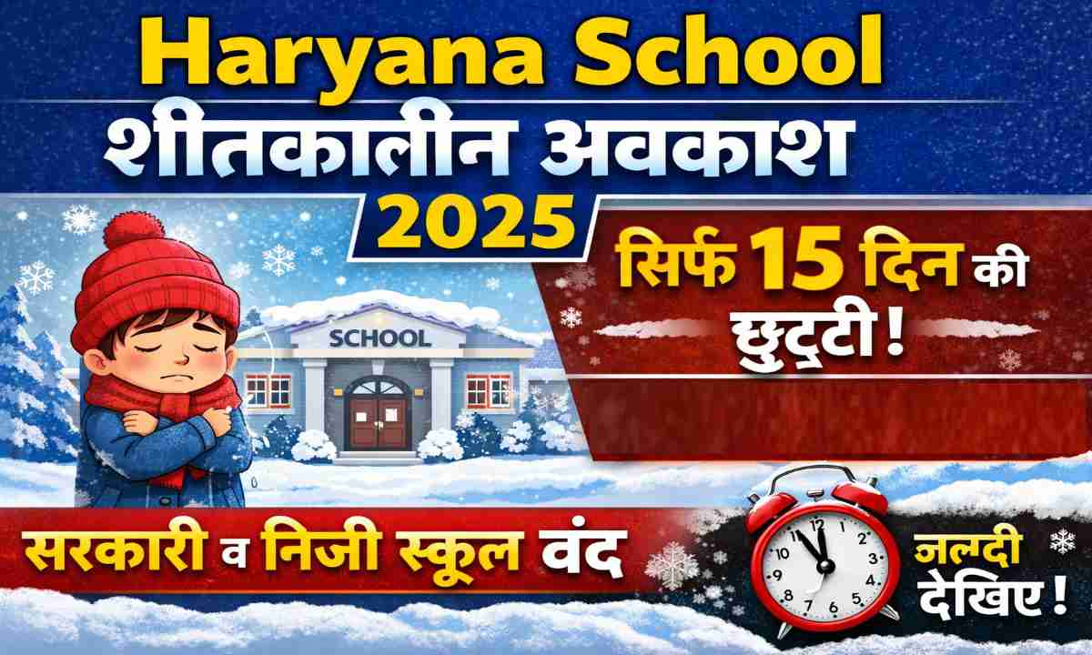 Haryana School Winter Vacation 2025: हरियाणा विद्यालय शिक्षा निदेशालय की तरफ से हर वर्ष सरकारी और प्राइवेट दोनों स्कूलों में शीतकालीन अवकाश किया जाता है। जो की 15 दिन का रहता है। यह अवकाश बढ़ती हुई ठंड के कारण किया जाता है। तो पिछले सालों की भाँति इस साल भी Haryana School Winter Vacation 2025 हरियाणा विद्यालय शिक्षा निदेशालय की तरफ से घोषित किया गया है। यह अवकाश इस बार भी 15 दिन का ही रहने वाला है।