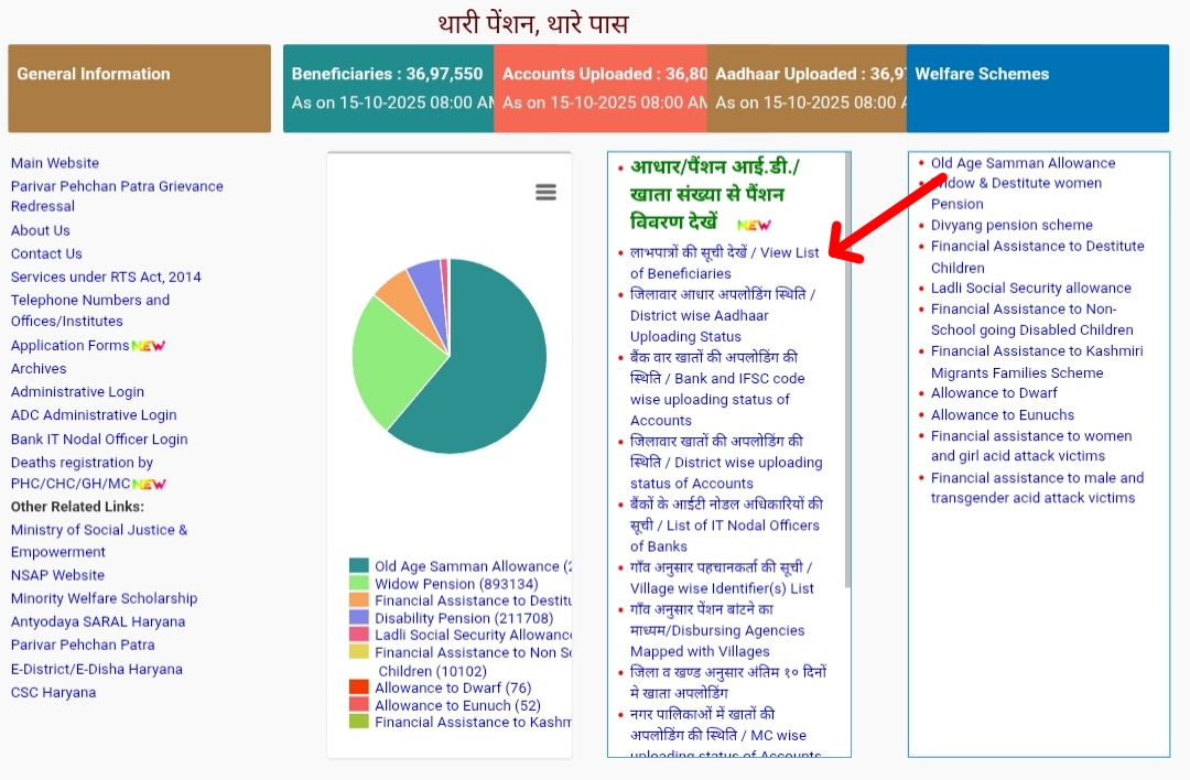 - चरण 1 : सबसे पहले, लाडो लक्ष्मी योजना सूची 2025 देखने के लिए हरियाणा सामाजिक न्याय विभाग की पेंशन वेबसाइट पर जाएं। लिंक नीचे है।