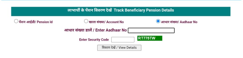 - ऑफिशल वेबसाइट के होम पेज पर आपको “आधार/पैंशन आई.डी./खाता संख्या से पैंशन विवरण देखें” आप्शन पर क्लिक करना होगा। नीचे फोटो भी दिखाई गई है।