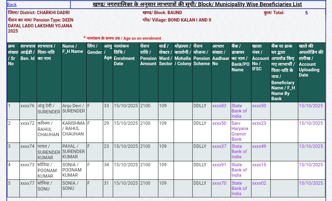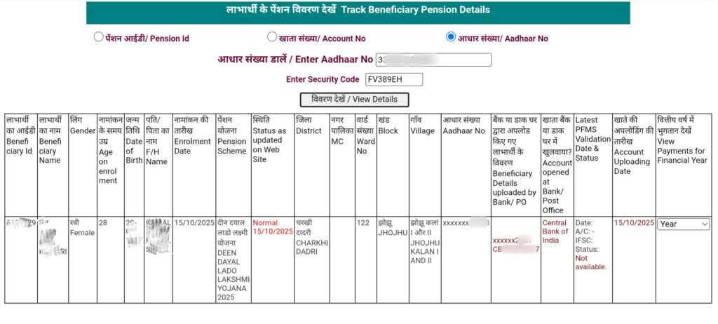 - इसके बाद आपको लाभार्थी की दीन दयाल लाडो लक्ष्मी योजना पेंशन आईडी, पेंशन का स्टेटस आदि दिखाई देगा।