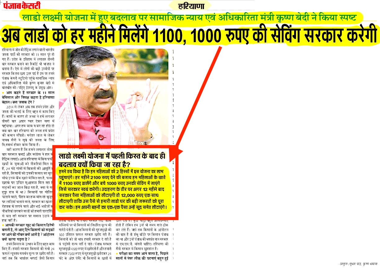 Lado Lakshmi Yojana List 2025: हरियाणा सरकार द्वारा प्रदेश की महिलाओं के लिए लाडो लक्ष्मी योजना का शुभारंभ किया जा चुका है जिसके अंतर्गत महिलाओं को ₹2100 प्रति महीना के धनराशि दी जाएगी। जिसके लिए सरकार की तरफ से लिस्ट भी जारी कर दी गई है।लिस्ट के आधार पर महिलाओं को सरकार पैसे देगी ।लेकिन सरकार ने अब बड़ा बदलाव कर दिया है, जिससे अब 2100 रुपये हर महीने नहीं मिलेंगे । बल्कि 1100 रुपये ही हर महीने मिलेंगे. सम्पूर्ण जानकरी आप नीचे पढ़ सकते है. Lado Lakshmi Yojana List 2025 लिस्ट को आप ऑनलाइन डाउनलोड कर सकते हैं। इसकी संपूर्ण जानकारी आपको नीचे दी जाएगी।