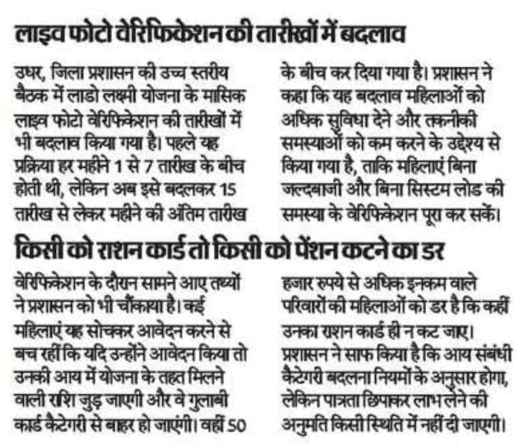 - सीआरआईडी प्रत्येक माह की सात तारीख तक पात्र महिलाओं की अंतिम सूची तैयार कर सेवा विभाग को भेजेगा।