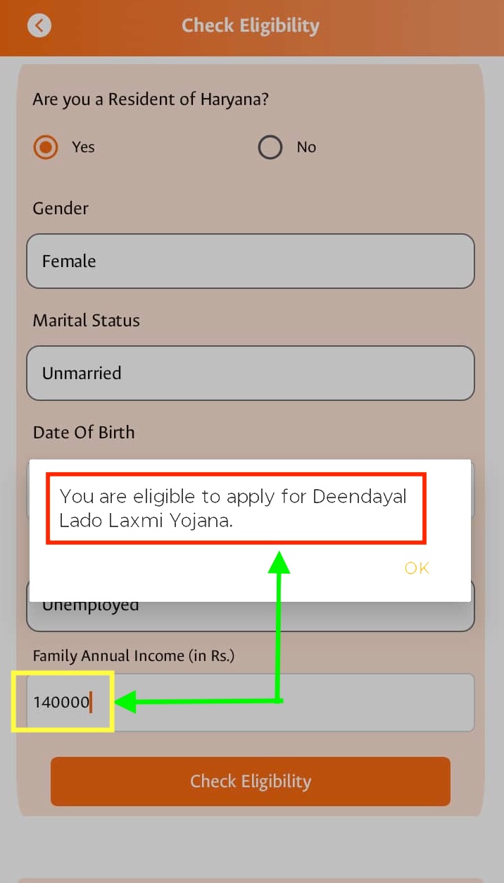 योजना में पहले आवेदन के लिए फैमिली आईडी में वार्षिक आय 1 लाख से कम वाले ही आवेदन कर सकते थे,लेकिन आप योजना की ऑफिसियल मोबाइल ऐप में आवेदन के लिए आय सीमा को बढ़ा कर 1 लाख 40 हजार कर दिया है, जिससे अब 1 लाख से ऊपर के आय वाले भी आवेदन कर पाएंगे। जिसके लिए पहले आपको अपने मोबाइल में लाडो लक्ष्मी योजना की मोबाइल ऐप को Update करना होगा तभी आप 1 लाख से ऊपर की आय के लिए आवेदन कर पाएंगे।