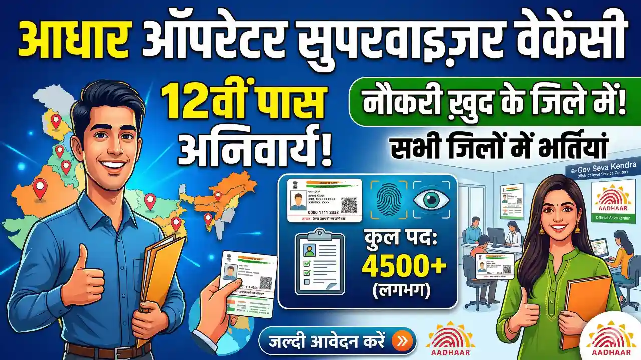 Aadhar Operator Supervisor Vacancy 2026: 12वी पास करे आवेदन