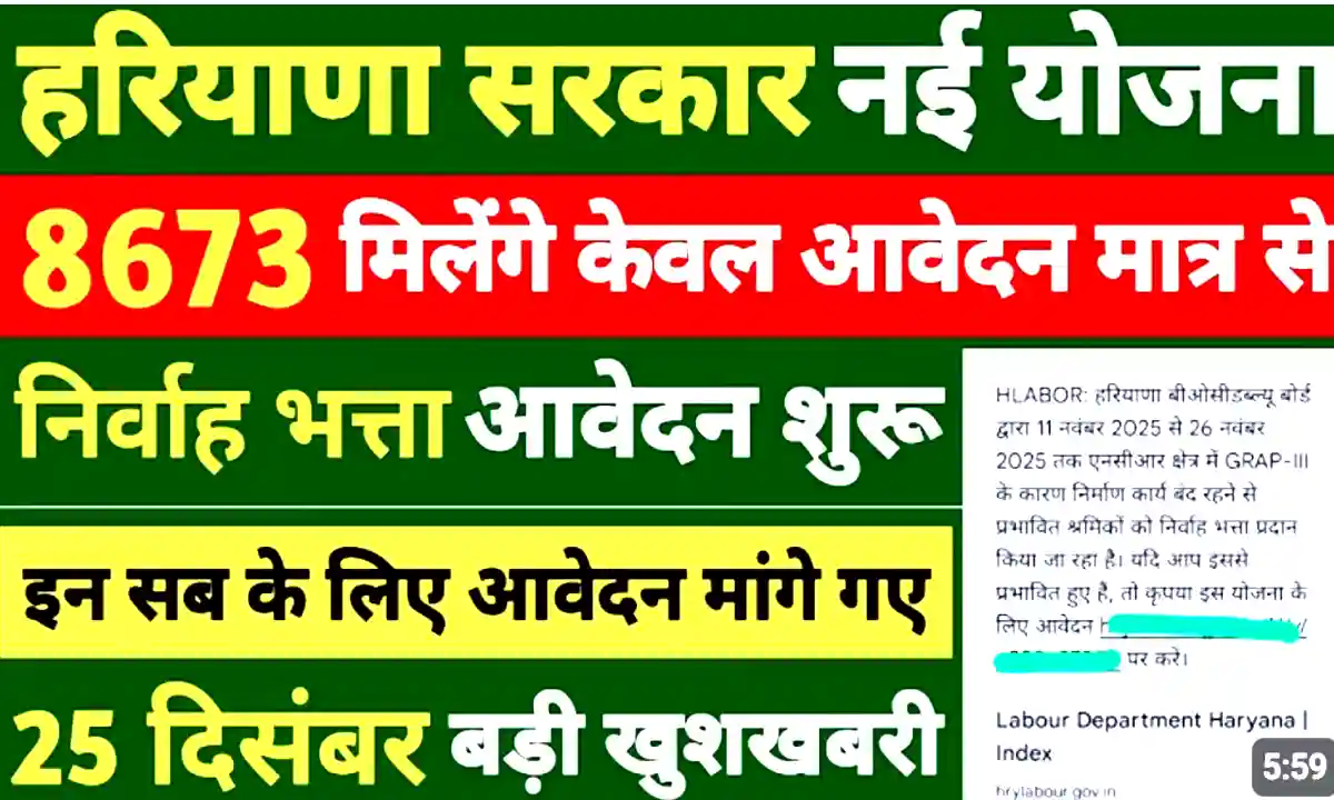 Haryana Nirvaah Bhatta Yojana 2025: हरियाणा सरकार ने प्रदेश के मजदूरों के लिए Haryana Nirvaah Bhatta Yojana का शुभारंभ किया …